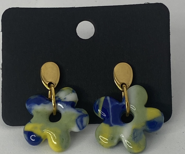 Boucles d’oreilles en porcelaine, effet marbre Fait Main, teintée dans la masse, modèle unique, accroche doré en acier inoxydable.