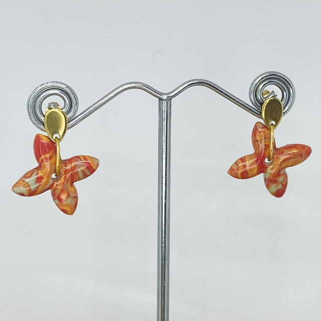 Boucles d’oreilles en porcelaine, effet marbre Fait Main, teintée dans la masse, modèle unique, accroche dorée en acier inoxydable.